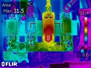 Da bi se osigurali proizvodni procesi bez zastoja, potrebno je izvršiti preglede elektro – ormara, trafostanica te elektro-ormara strojeva. Svako zagrijavanje bilo kojeg elementa znači neku nepravilnost u radu. Infracrvenom termografijom se vrši pregled svih dijelova pod naponom. Pregledi se vrše u razmacima od nekoliko mjeseci te se broj nepravilnosti smanji za 70-80% i te nepravilnosti ne mogu utjecati na proizvodni proces.